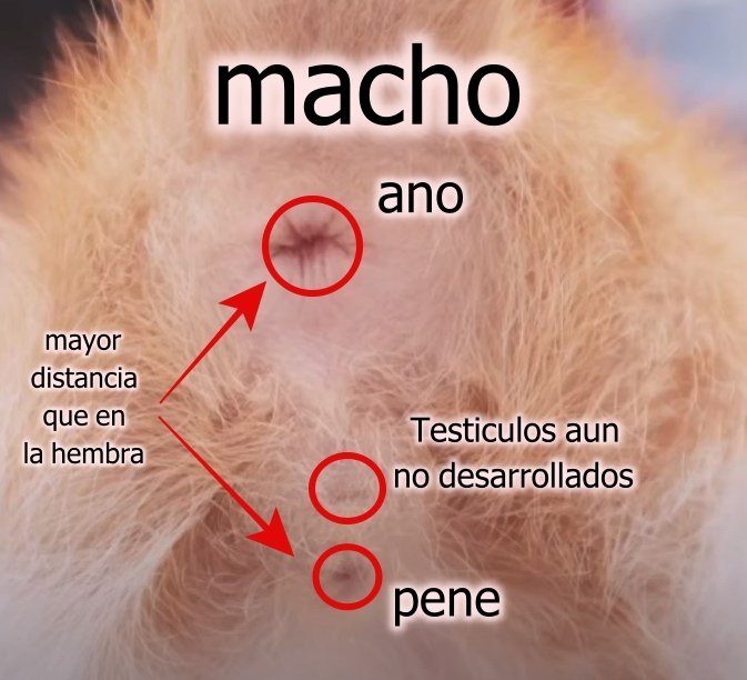 pues sencillo,las hembras normalmente tienen la vulva mas cerca del orificio del ano que los machos, eso se debe porque el macho a partir aproximadamente después de los 6 meses mas o menos tiende a desarrollar los testículos que al crecer o como se conoce en el termino popular, «le bajan los huevitos» y están situados entre el ano y el pene, por ende la distancia entre el pene y el ano es mayor que la distancia entre la vulva y el ano.